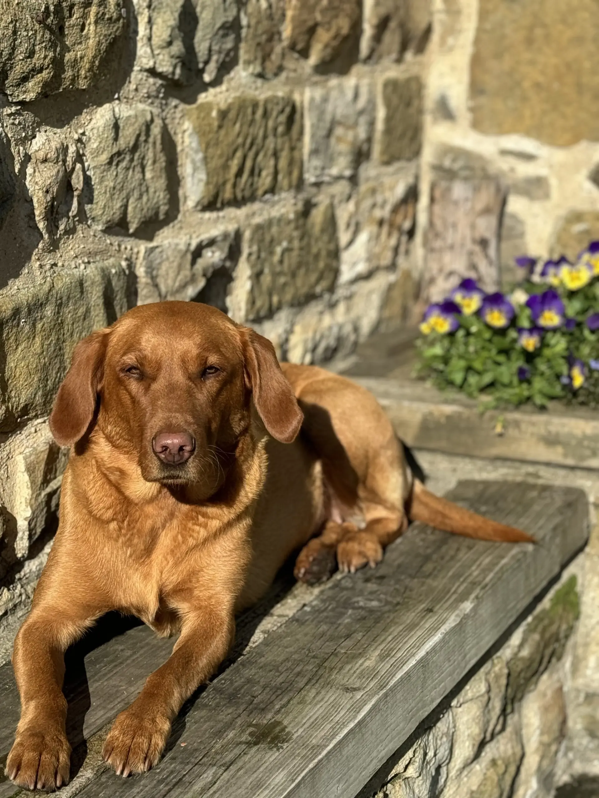 No longer a puppy, this fox-red mongrel lab-springer, is an absolute gem to have around the place. She has full run of the farm in Yorkshire, and will mostly be seen at BBQ time, begging everyone for their scraps, as if she’s never been fed! She is completely mad for the quad bike or pickup, and will be seen running for miles, while barking and trying to get herself caught under the tyres. But everyone seems to love her!